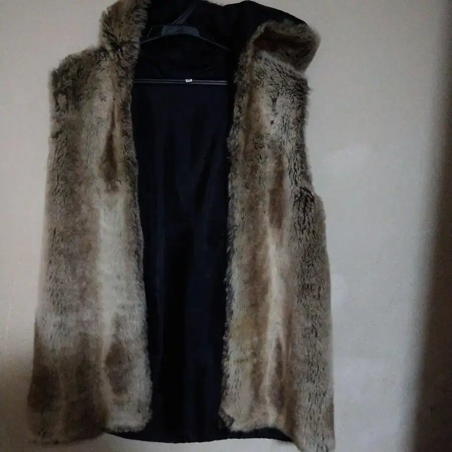 후드 부착 베이지 퍼 롱 베스트 M 사이즈