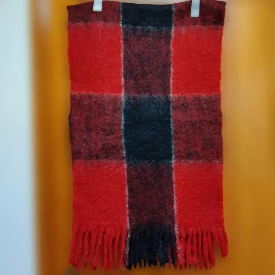 빨간색 블랙 체크 스톨 울 모헤어 빈티지