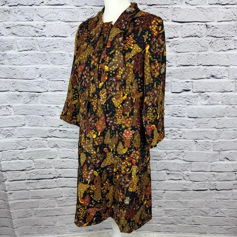 쇼와 레트로 긴팔 원피스 블랙 x 브라운 000400