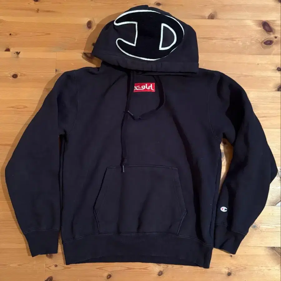 X-girl Champion 콜라보 후드티 블랙 S 사이즈