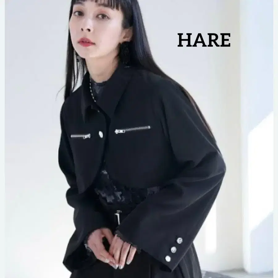[ 새상품급 ] HARE 메탈 지퍼 숏 블루종 크롭 자켓 블랙