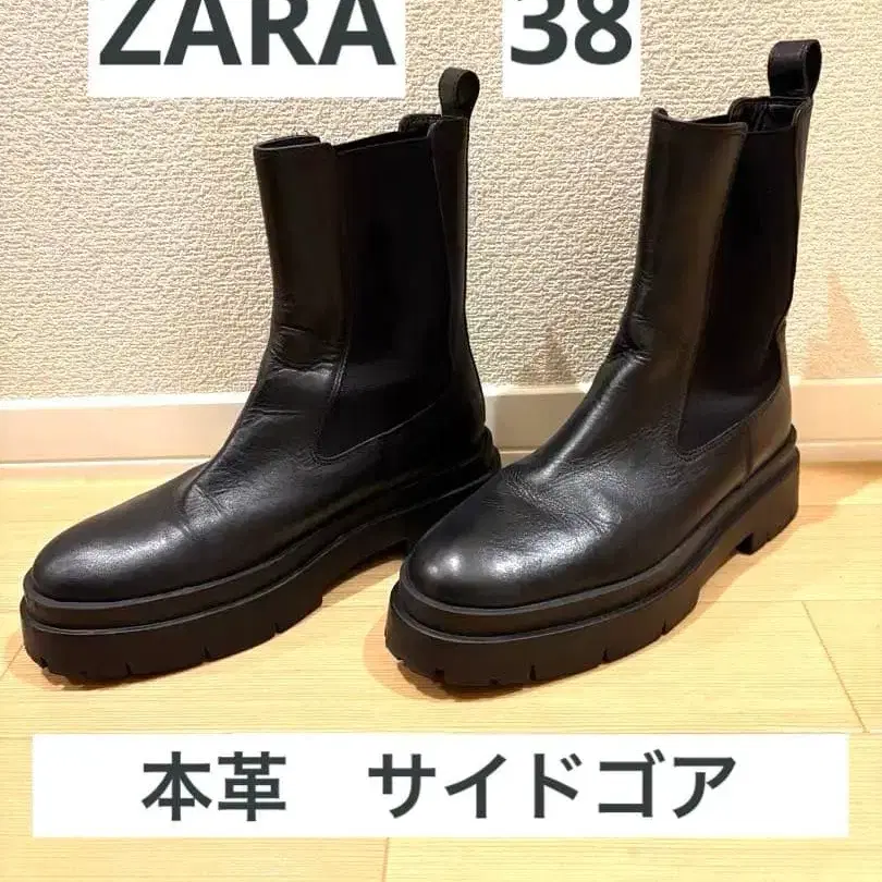 ZARA 천연 가죽 블랙 가죽 사이드 고어 부츠 통굽