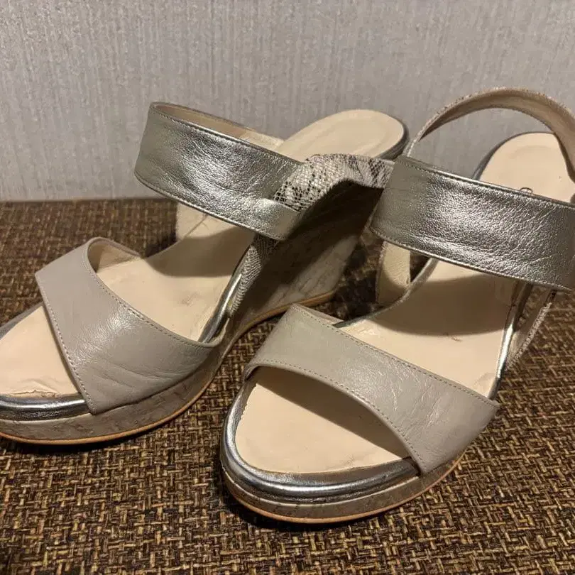 elegance 실버 가죽 웨지 샌들