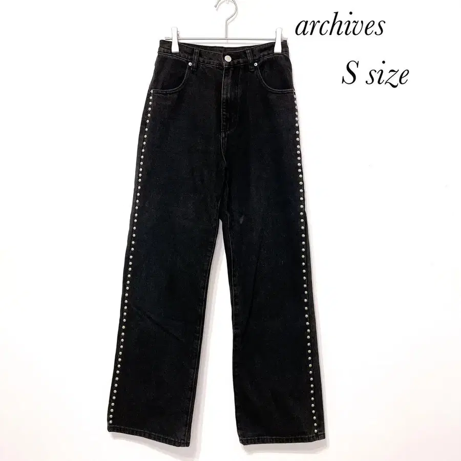 아카이브 양 사이드 스터드 장식 블랙 데님 스트레이트 여성용 S