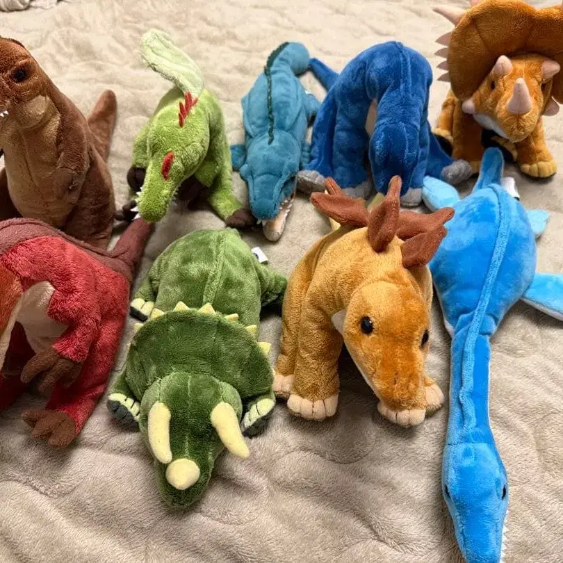 COLORATA의 공룡 봉제 인형입니다. 일반적인 중고품입니다. 소중히 장식하거나 사용했지만 집 공간이 부족해 판매합니다. 소중히 사용해주실 분께 양도하고 싶습니다. 종이 택은 없습니다. 1번째 사진에 있는 9체 세트 가격입니다. 다른 앉아있는 트리케라톱스, 파라사우롤로푸스도 소지하고 있지만 판매를 망설이고 있습니다. 해당 상품들도 함께 구매하시면 13500엔에 양도해 드립니다. 1번째 사진의 9체는 단품으로도 양도 가능하지만, 개당 1500엔으로 가격이 다소 높습니다. 모두 정가 2420엔의 상품들로 매우 저렴하다고 생각됩니다. 침수 방지를 위해 비닐에 함께 넣고 종이상자 등으로 발송 예정입니다. 질문 등이 있으시면 편하게 문의해주세요. 티라노사우루스, 브라키오사우루스, 스피노사우루스, 모사사우루스, 트리케라톱스, 스테고사우루스, 알로사우루스, 스티라코사우루스, 후타바스즈키류 앉아있는 시리즈, 리얼, 어린이, 완구