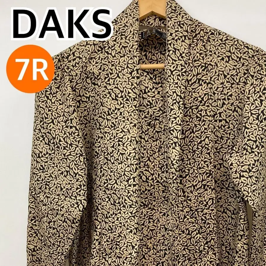 DAKS 닥스 상의 아우터 자켓 리프 무늬 실크100% 베이지 블랙 여성용 7R 사이즈 [ CT1895 ]