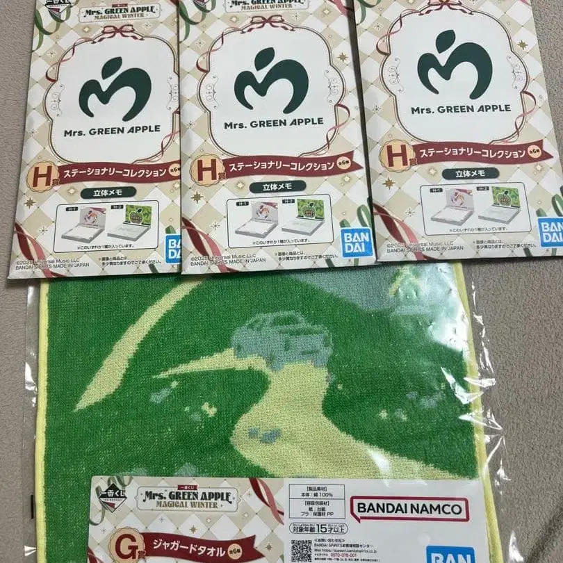 Mrs.GreenApple 제일복권 H상 메모장 + G상 타월 묶음 4점