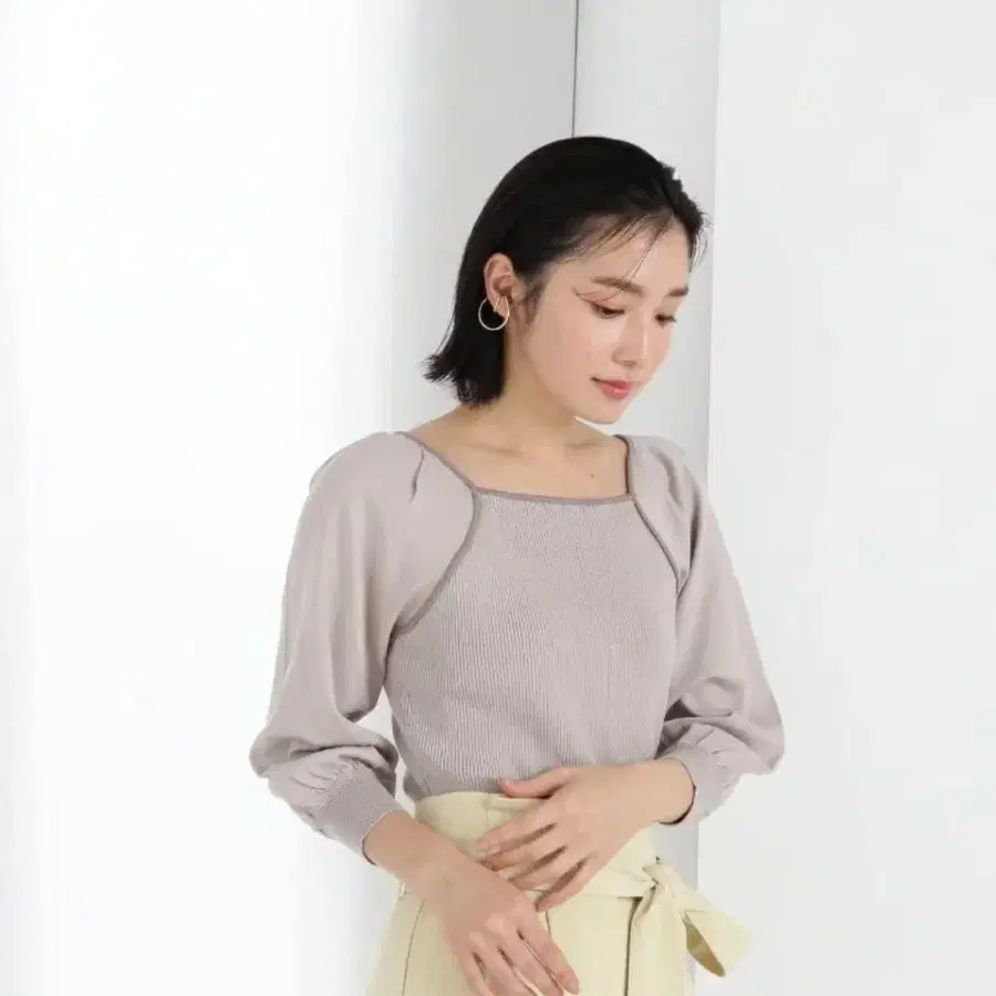 바이컬러 파이핑과 볼륨감 있는 소매가 시선을 사로잡는 니트입니다. 소매에 턱을 넣어 입체감을 살린 파워 숄더가 포인트인 니트는, 넥라인부터 암홀까지 바이컬러 파이핑을 넣어 클래시컬하고 여성스러운 인상을 줍니다. 몸통 부분은 적당한 핏감의 리브로 마무리하여 대비되는 실루엣을 연출했습니다. 스커트는 물론 팬츠와도 궁합이 좋은 추천 아이템입니다.