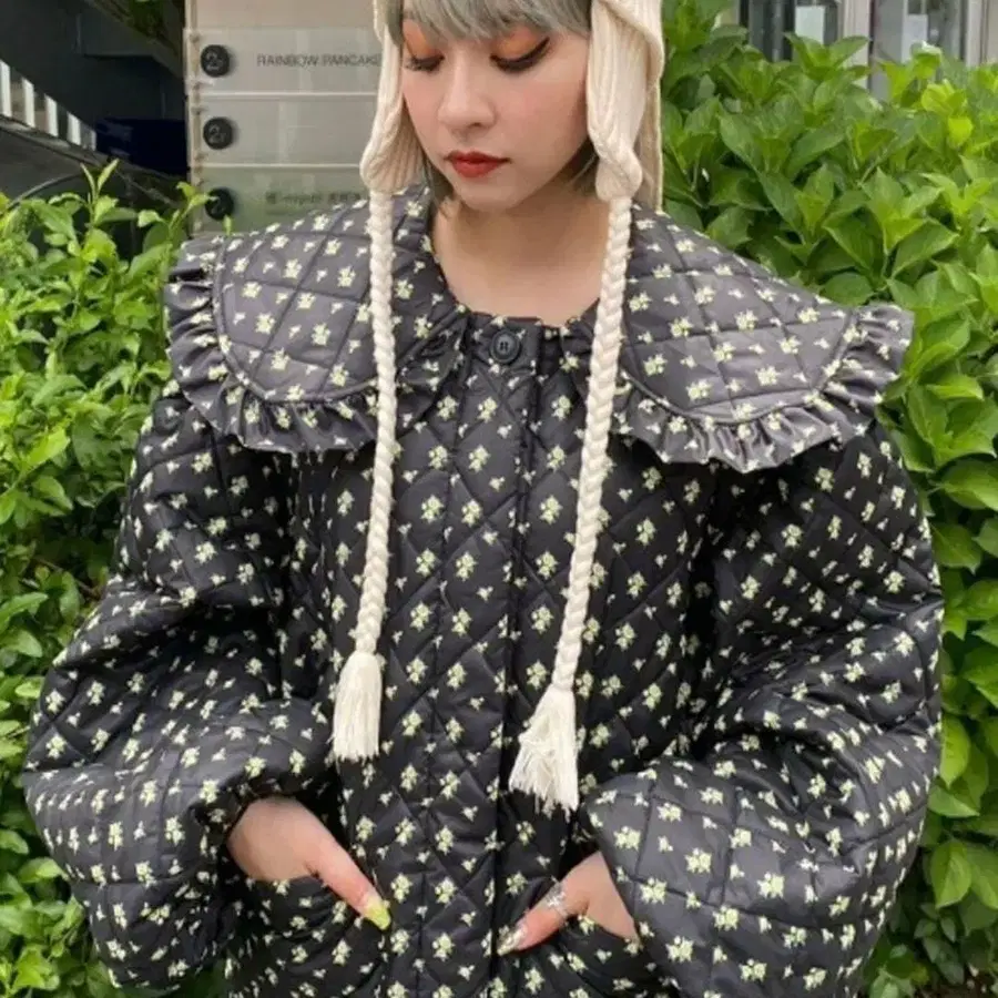 새상품급 Candy Stripper 플라워 퀼팅 자켓 블랙