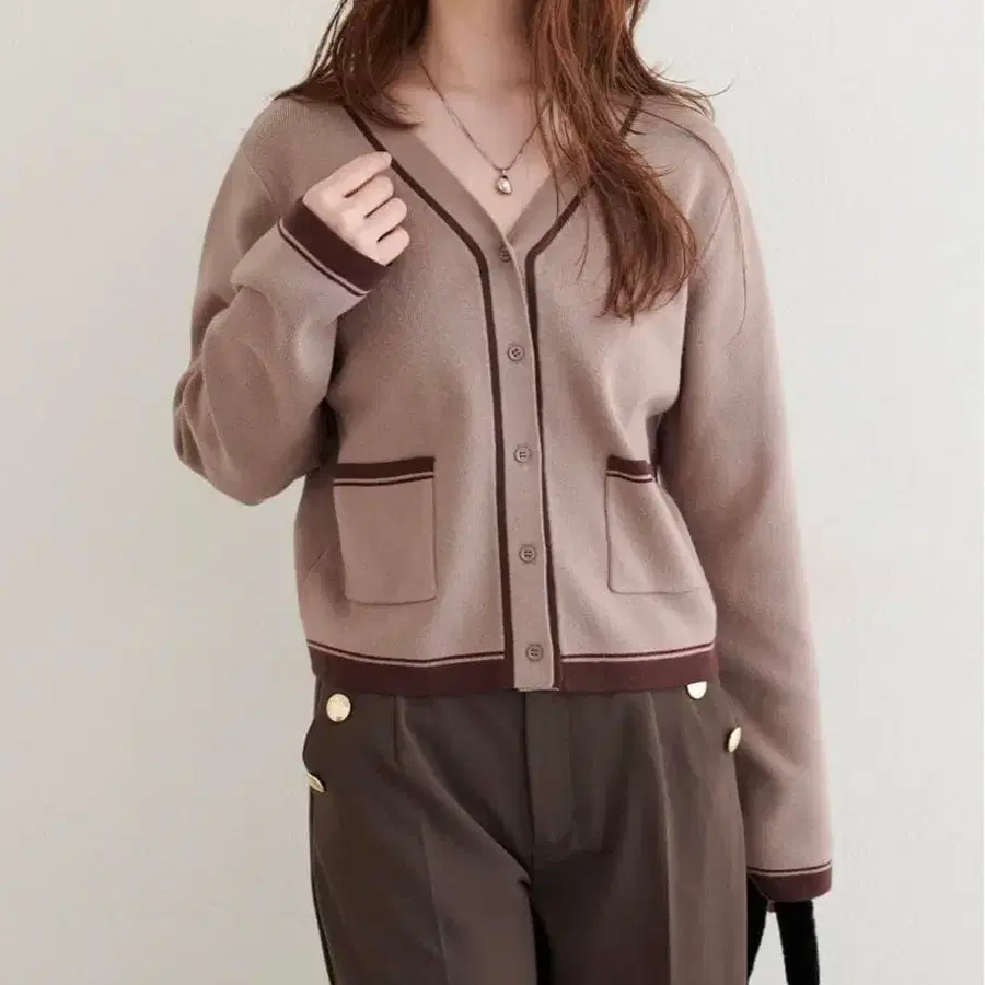 [택 포함 새상품] 내추럴 꾸뛰르 배색 라인 가디건