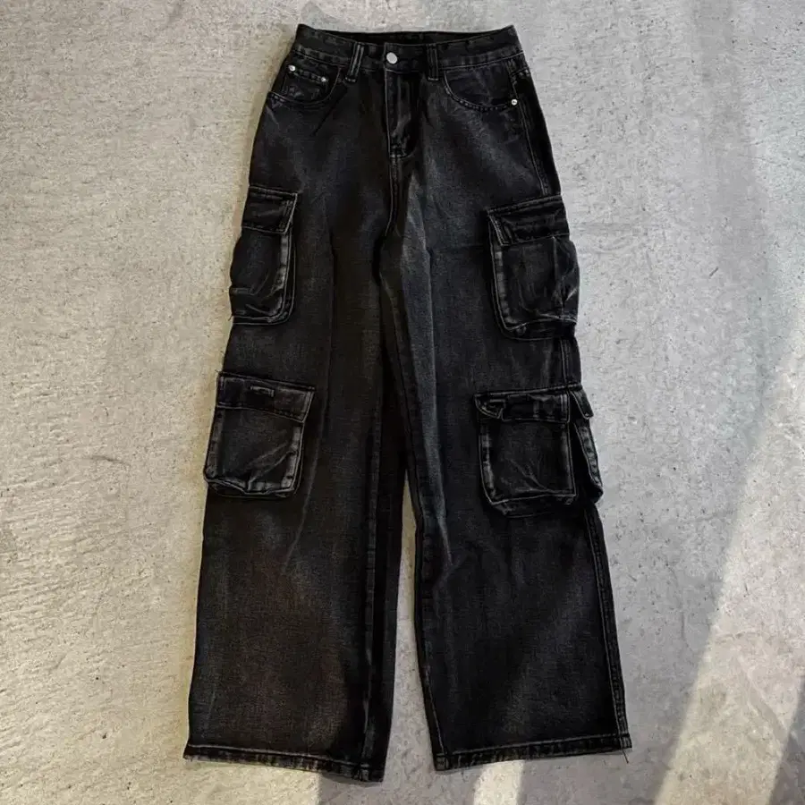 블랙 와이드 카고 팬츠 배기 데님 Y2K