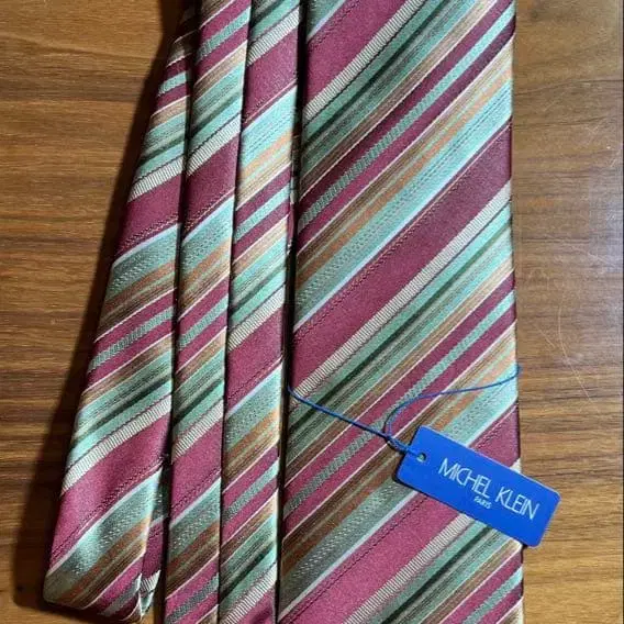 MICHEL KLEIN 버건디 스트라이프 넥타이