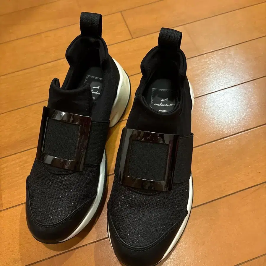 [새상품급] 엔찬티드 통굽 웨지힐 메탈 버클 우천 겸용