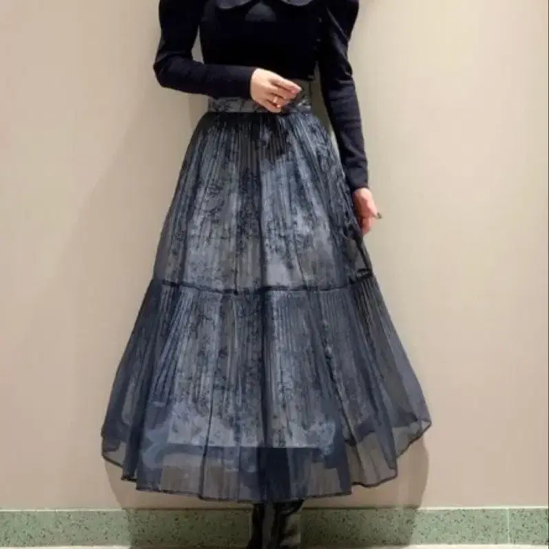 snidel 플리츠 쉬폰 레이어드 프린트 스커트