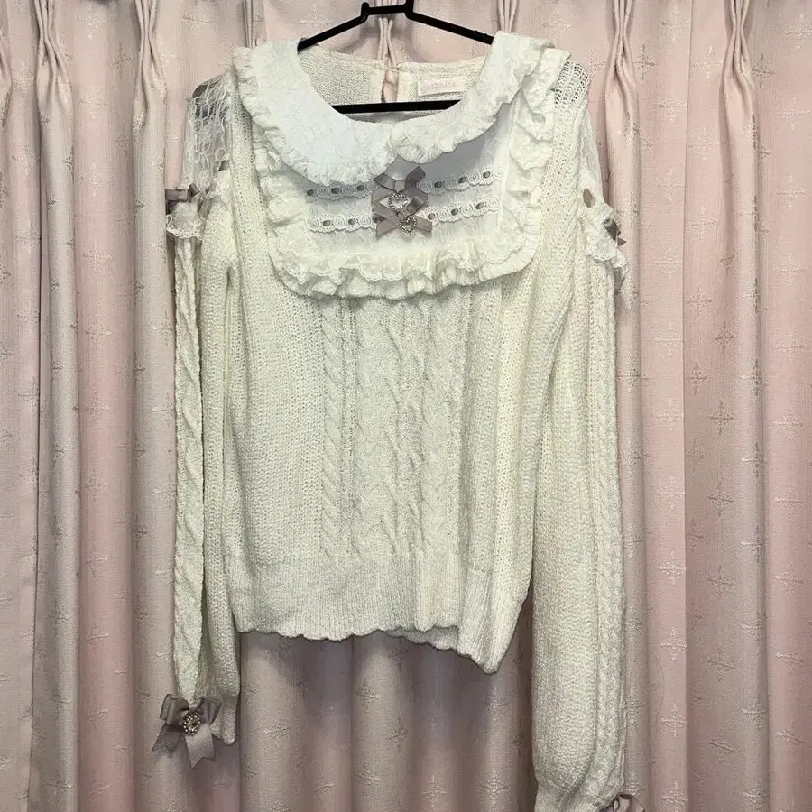 리즈리사 스퀘어 요크 프릴 니트 화이트 양산형 지뢰계