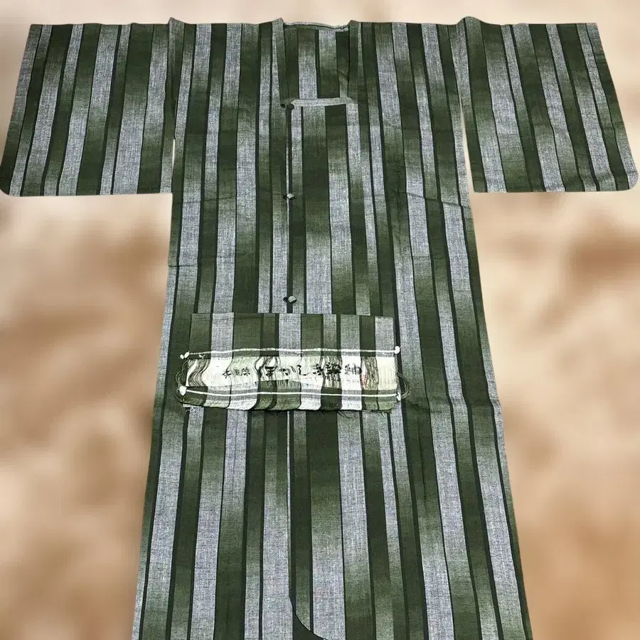 본명주 보카시 수제 염색 견직물 세로 줄무늬 미치유키 코트