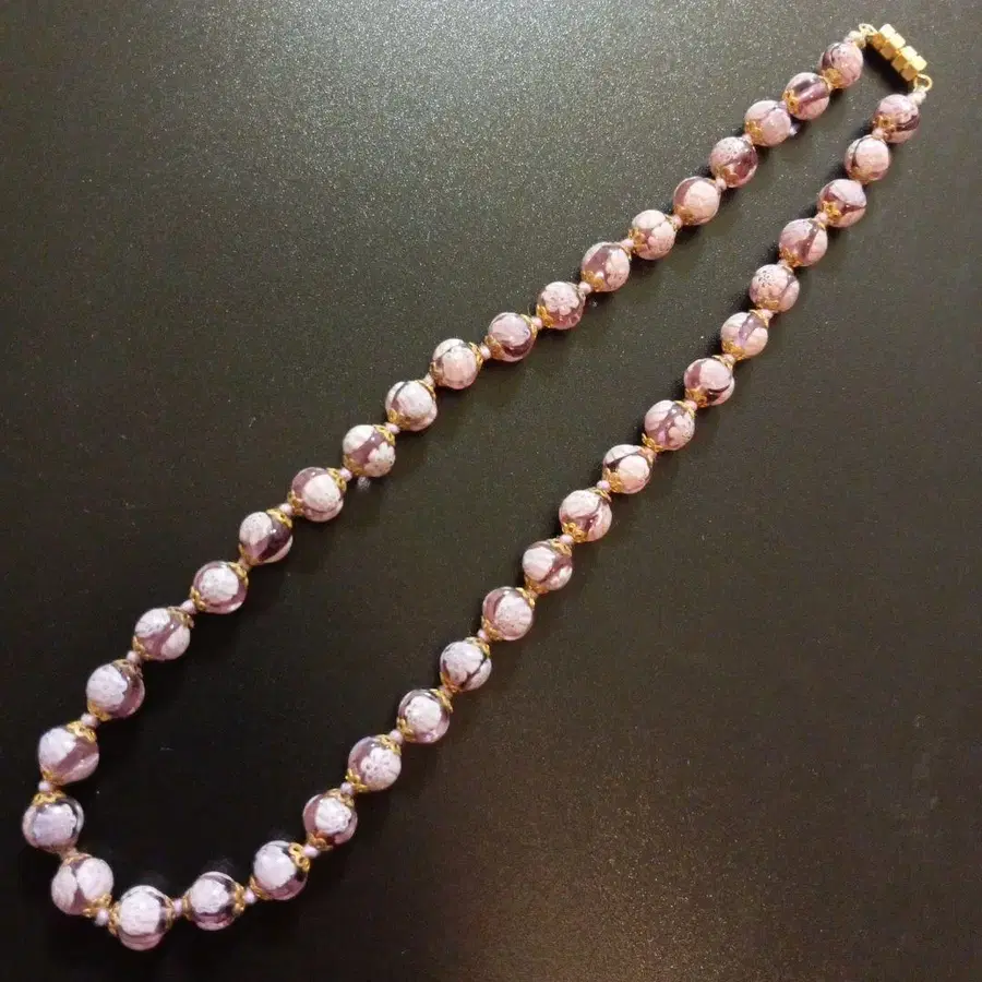 무라노 밀레피오리 플라워 이탈리아 유리 목걸이 퍼플