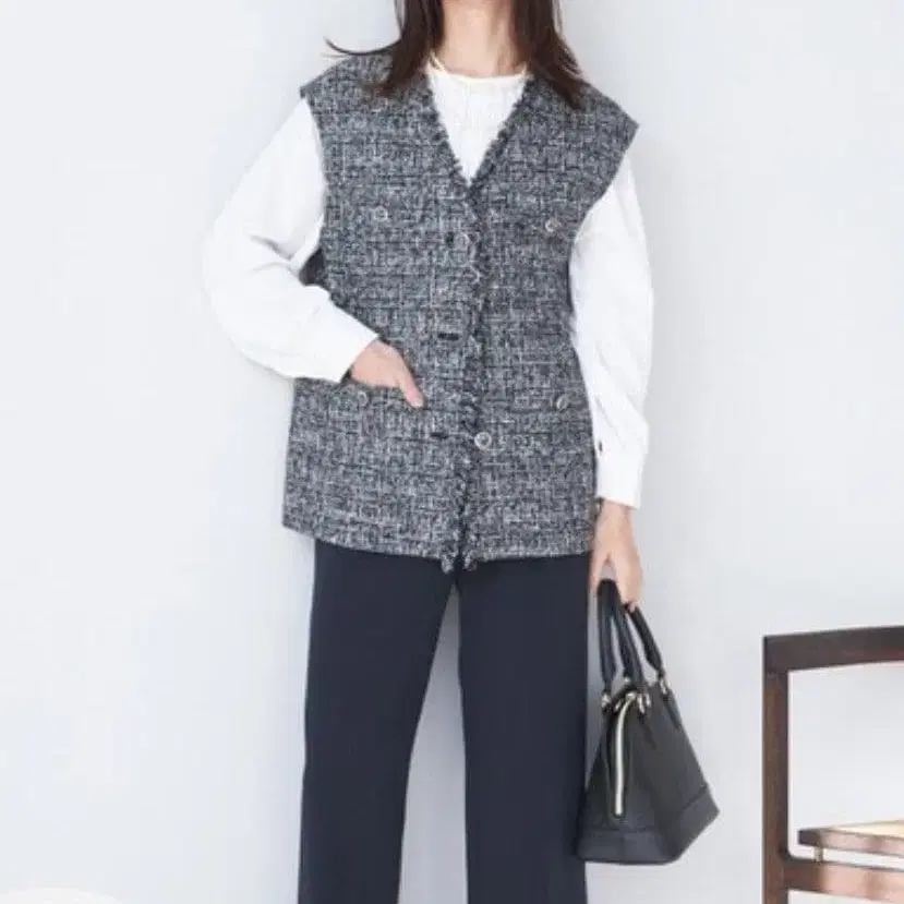 ■ 포인트/상세 적당한 라메가 들어간 트위드는 화려하며, 프린지가 적당히 악센트가 됩니다! 메탈 싸개 버튼으로 너무 눈에 띄지 않고, 광택을 더해 차분한 분위기를 연출합니다. 세레모니부터 출퇴근, 데일리로 돌려입기 좋습니다.