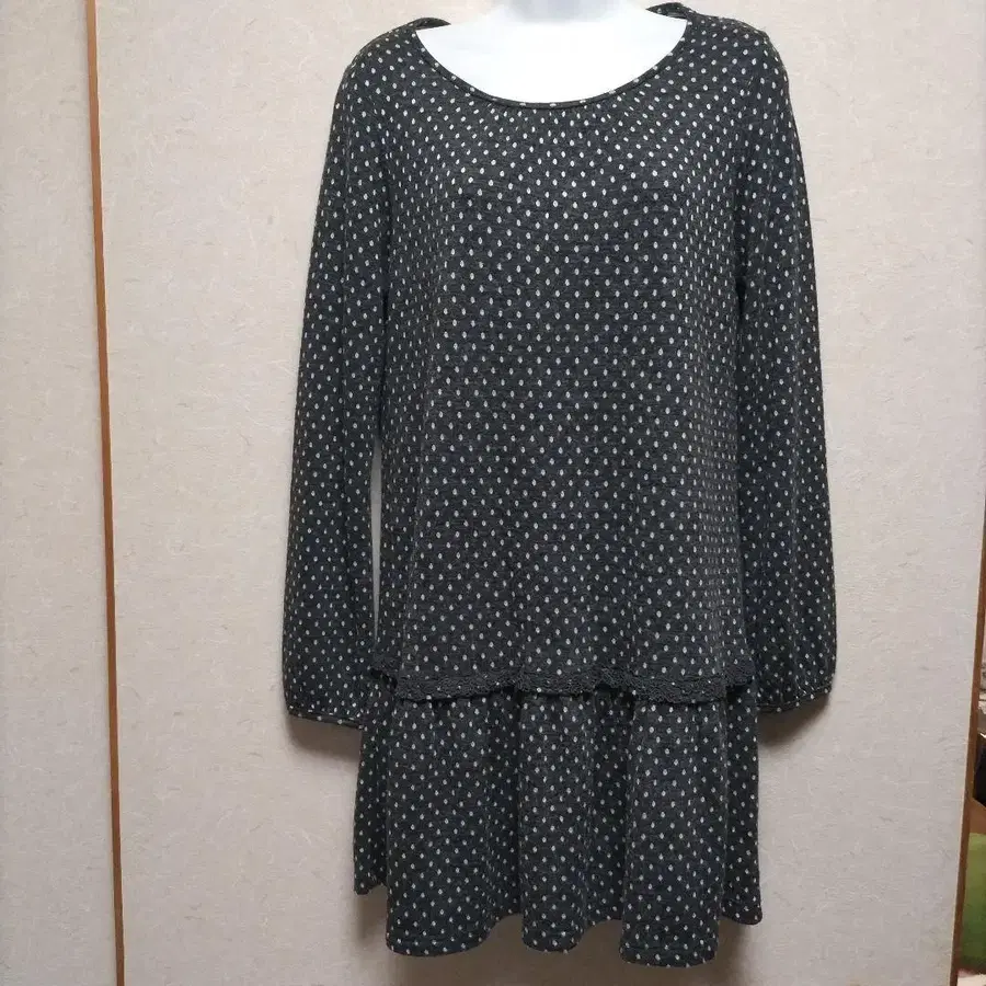 핑크하우스 다크 그레이 도트 무늬 튜닉 긴팔