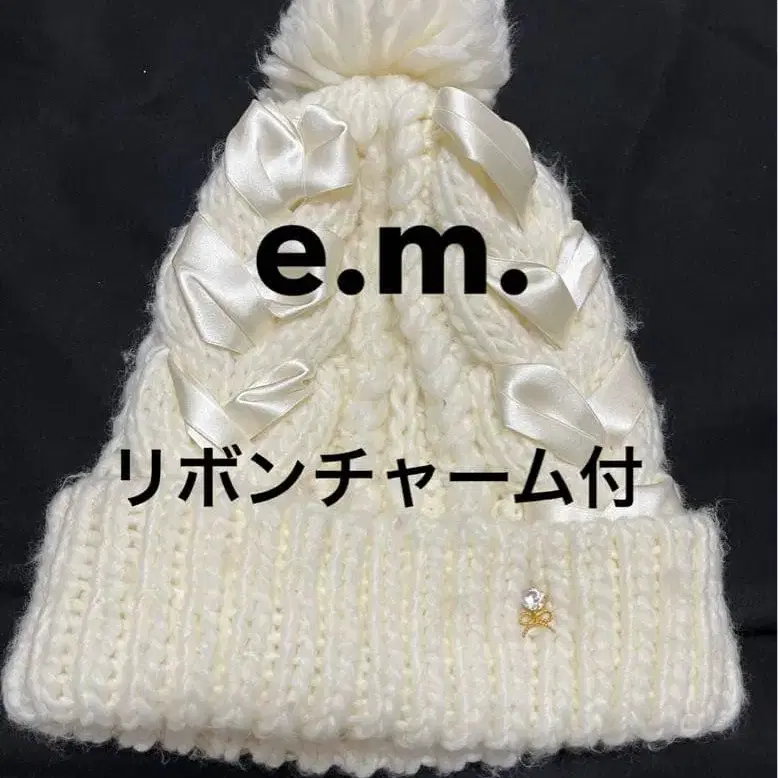 [ 새상품급 ] e.m. 이엠 참 장식 니트 모자 리본 프리 사이즈