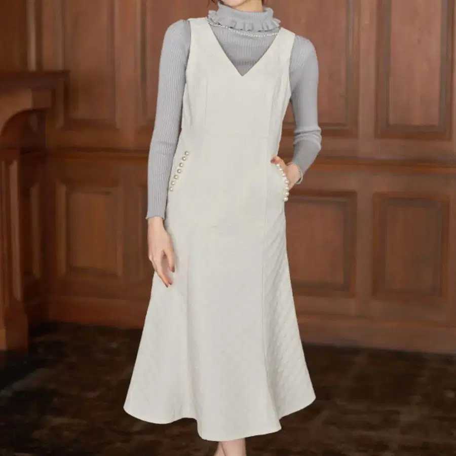[ 미사용 새상품 ] tocco 포켓 펄 장식 퀼팅 오버롤 스커트