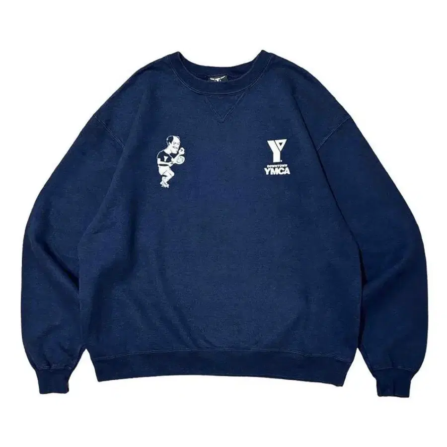 Y2K 빈티지 맨투맨 기업 로고 네이비 M 희귀 디자인