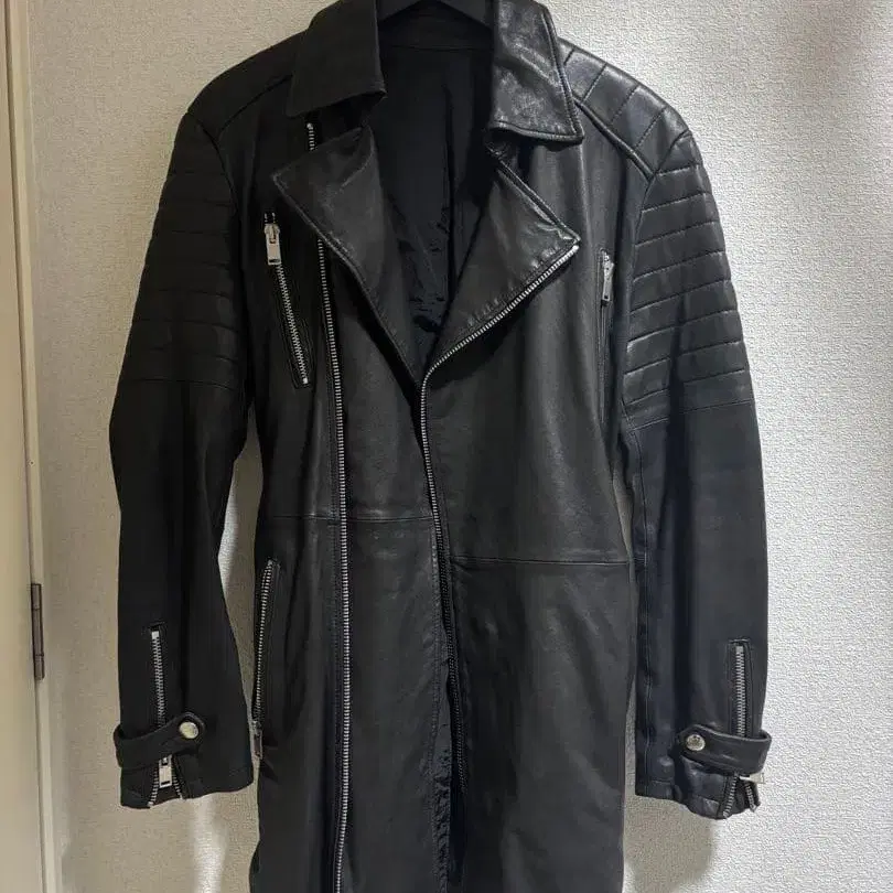 • A&S selection 블랙 가죽 더블 라이더 자켓