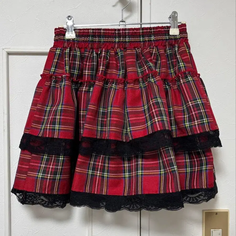 빨간색과 검은색 체크 무늬 플레어 스커트