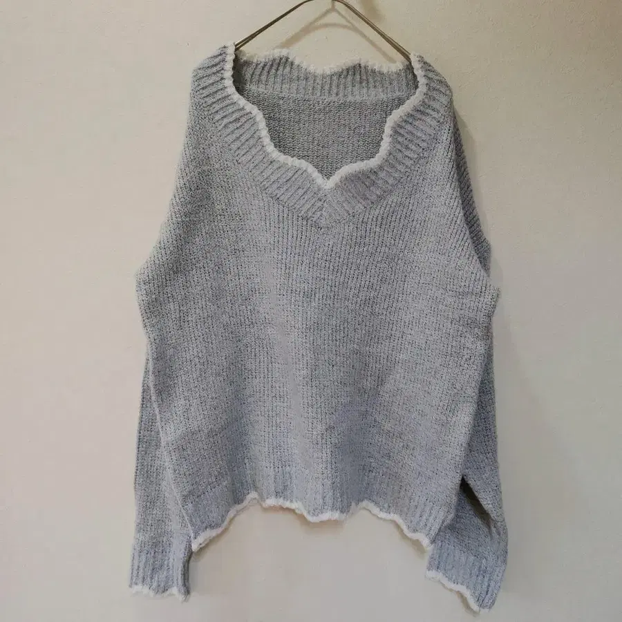 그레이 니트 [ XL ] 스캘럽 무지 하얀 테두리 오버 사이즈 귀여운
