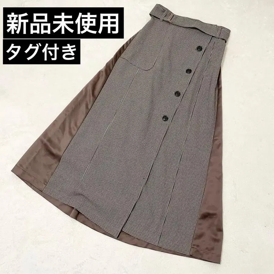 택 포함 미사용 새상품 아위에프 AuieF 체크 무늬 버튼 달린 랩스커트