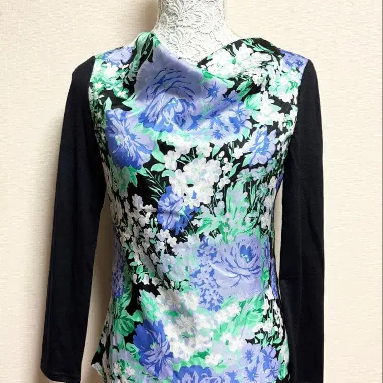 새상품급 마담 조콘다 플라워 프린트 드레이프 울 상의 38