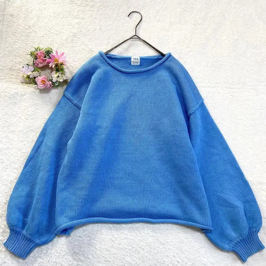abahouse ecru/터틀넥 니트 스웨터/루즈핏 스카이블루