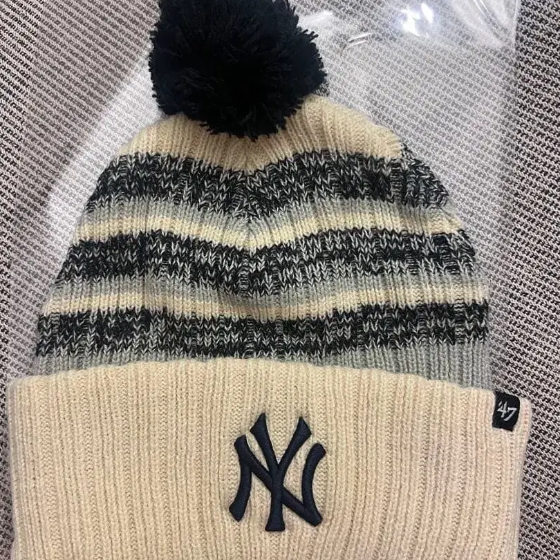47 니트 모자 폼폼 포함 아이보리 네이비