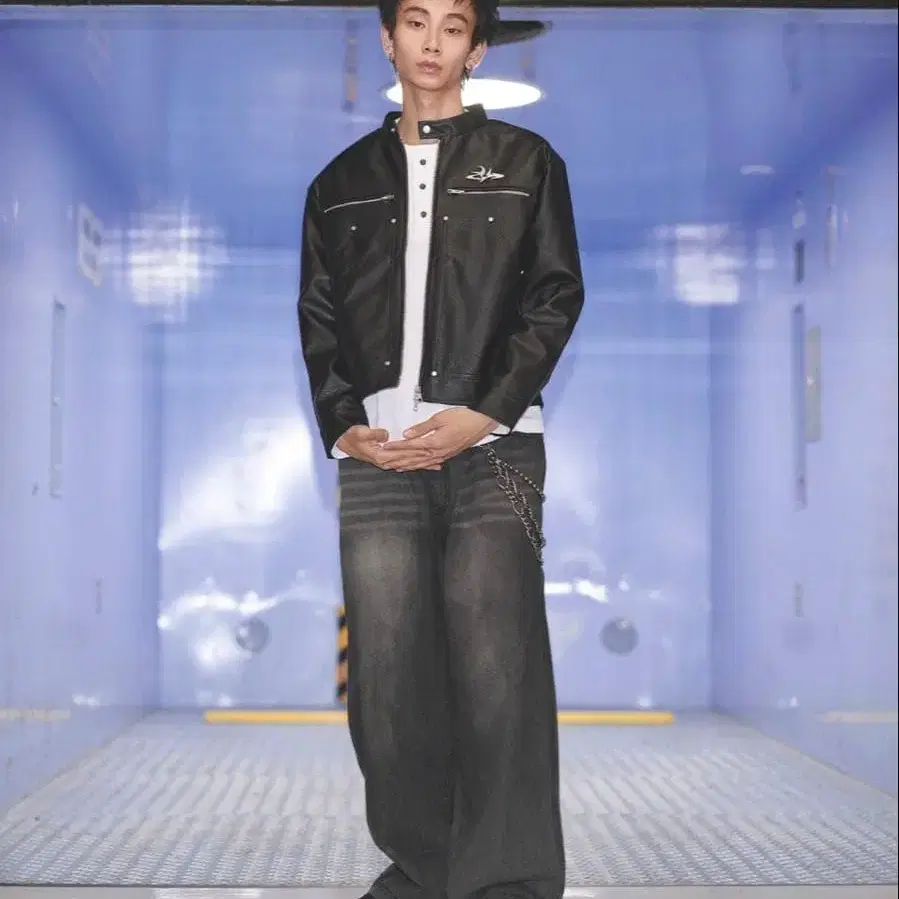 메탈 플레이트 인조 가죽 숏 바이커 자켓 [ UNISEX ]