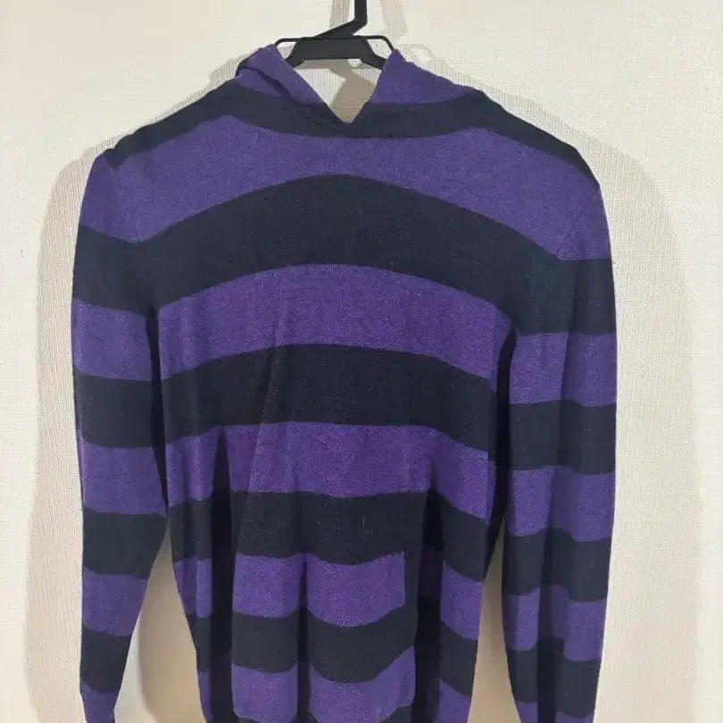 ORLANDINI 후드 부착 니트 스웨터 보라색과 블랙 스트라이프