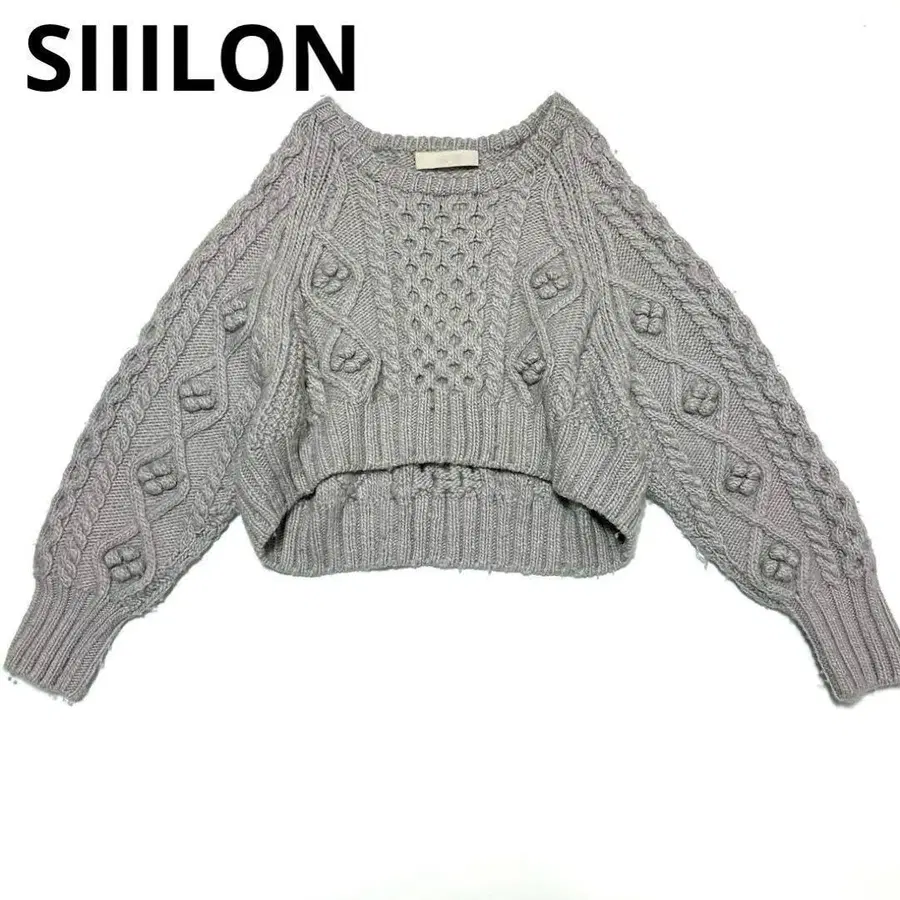 SIIILON 그레이 케이블 짜임 크롭 니트