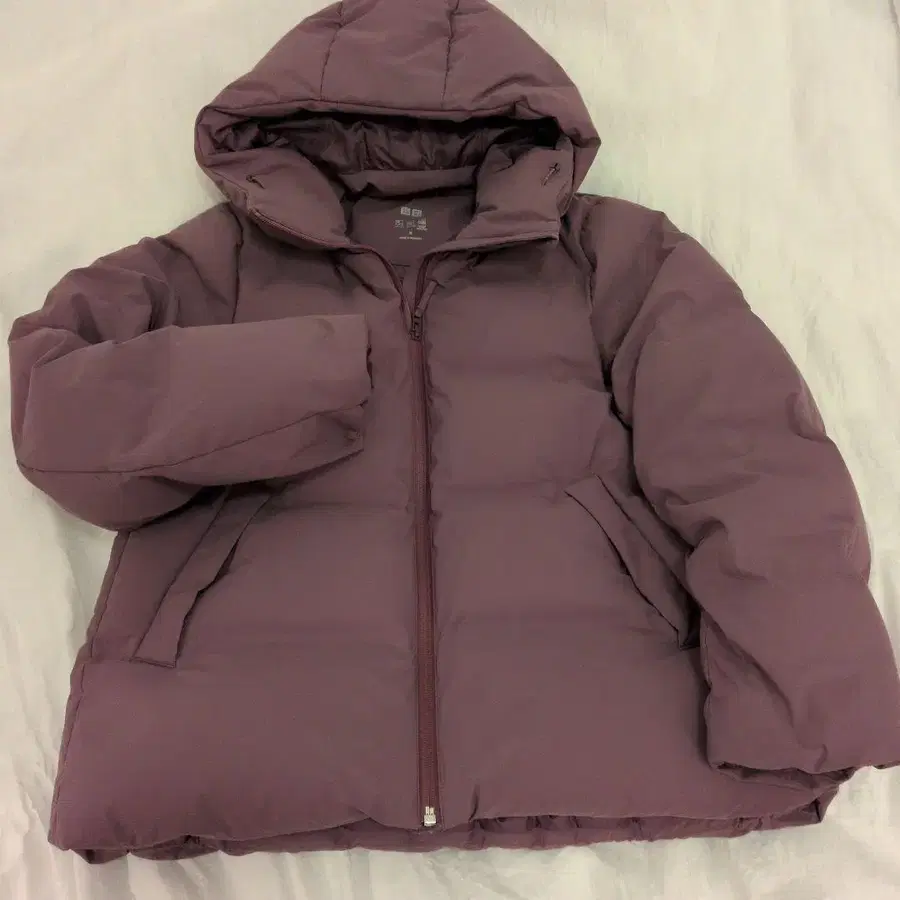 유니클로 퍼플 후드 부착 다운 자켓