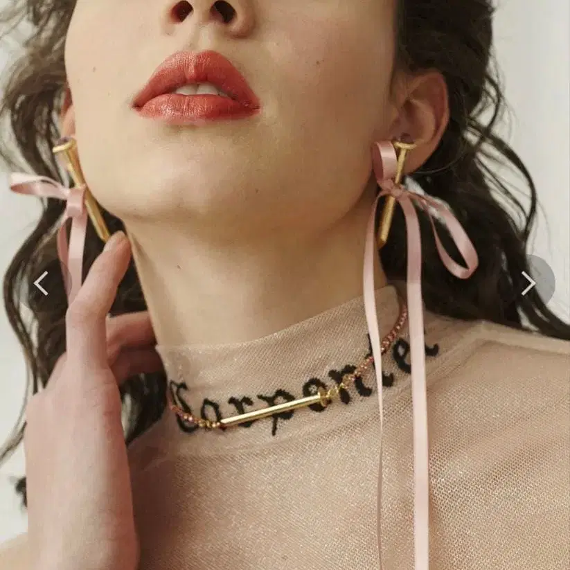 이번 시즌 테마 'NOBLE CARPENTER (귀족 목수)'에 맞춰 못을 본뜬 귀걸이입니다. 못 중간에 리본이 통과되어 있어, 못과 리본의 상반되는 달콤하고 강한 느낌이 PAMEO POSE다운 아이템입니다. 못 머리 위에는 비쥬가 올라가 있어 고급스러운 이미지도 연출합니다.