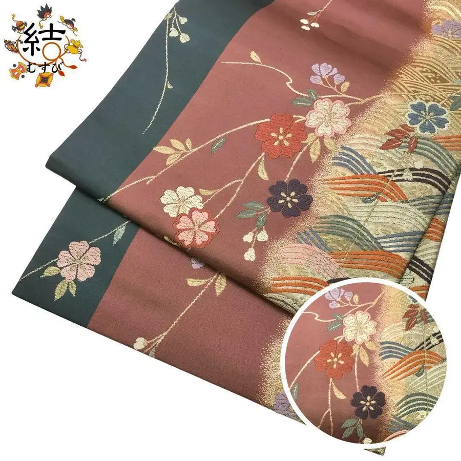 MO-3332 나고야 오비 세로 줄기 벚꽃 물결 무늬 금실