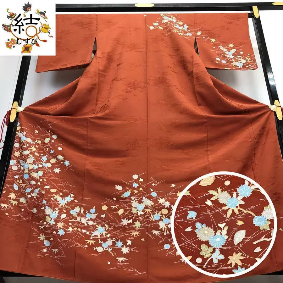 MK-1165 호몬기 사계절 꽃 무늬 소나무 잎 원단 패턴 금채 브라운