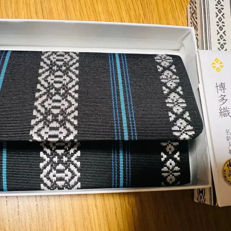 명함지갑 블랙/스카이블루 패브릭 소재 무늬