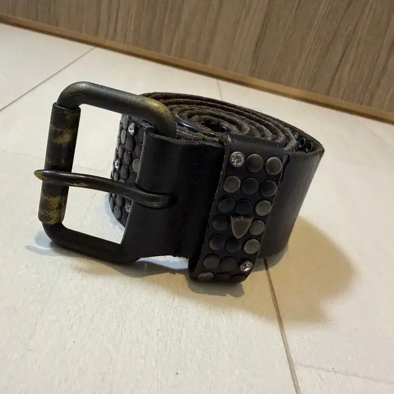 [ HTC ] 천연 가죽 벨트 블랙 큐빅 스터드 빈티지 가공