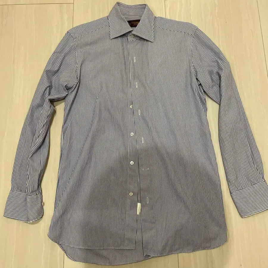 가마쿠라 셔츠의 스트라이프 셔츠입니다. 200수 원단이라 촉감이 매우 좋고, 고급스러워 보입니다. 더 이상 입을 기회가 없어 판매합니다. 최근 부활한 인기 고급 시리즈인 200수 라인에서 판매합니다. 사이즈: 38-82 옷깃 형태: 와이드 스프레드 칼라 원단: 200수 면(코튼) 100% 브로드 크로스(포플린) 색상 패턴: 파랑 블루, 런던 스트라이프 소매: 긴팔 슬림핏 MADE IN JAPAN 일본제 현행 모델 정가는 세금 포함 13,200엔입니다. 원단은 200수 중에서도 매우 희귀한 브로드 원단입니다. 매우 부드러운 질감이 매력입니다. 사이즈 상세 정보는 다음과 같습니다. 넥 사이즈: 약 38cm 어깨 너비: 약 44cm 가슴 너비: 약 52cm (겨드랑이 아래 가장 넓은 부분을 측정) 화장: 약 82cm 기장: 약 76.5cm