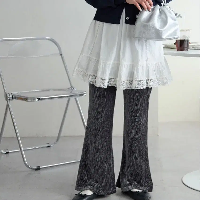 discoat 벨로아 플리츠 플레어 팬츠 S