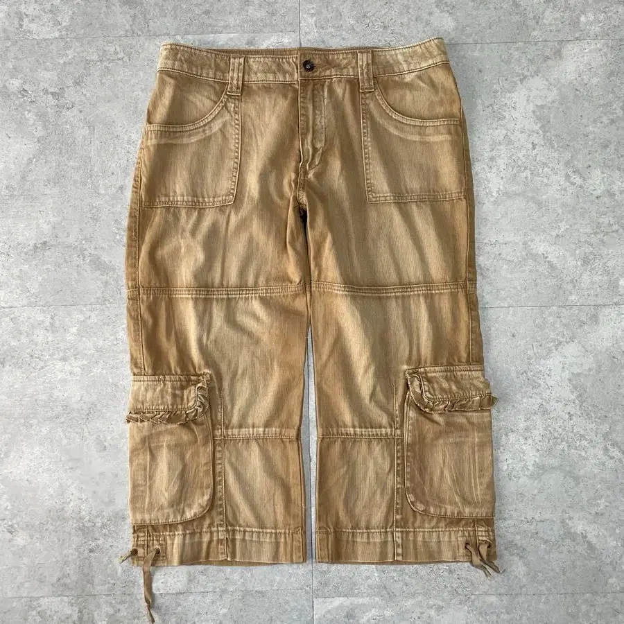 프릴 포켓 카고 팬츠 7부 기장 와이드 00s 아카이브 밀리터리