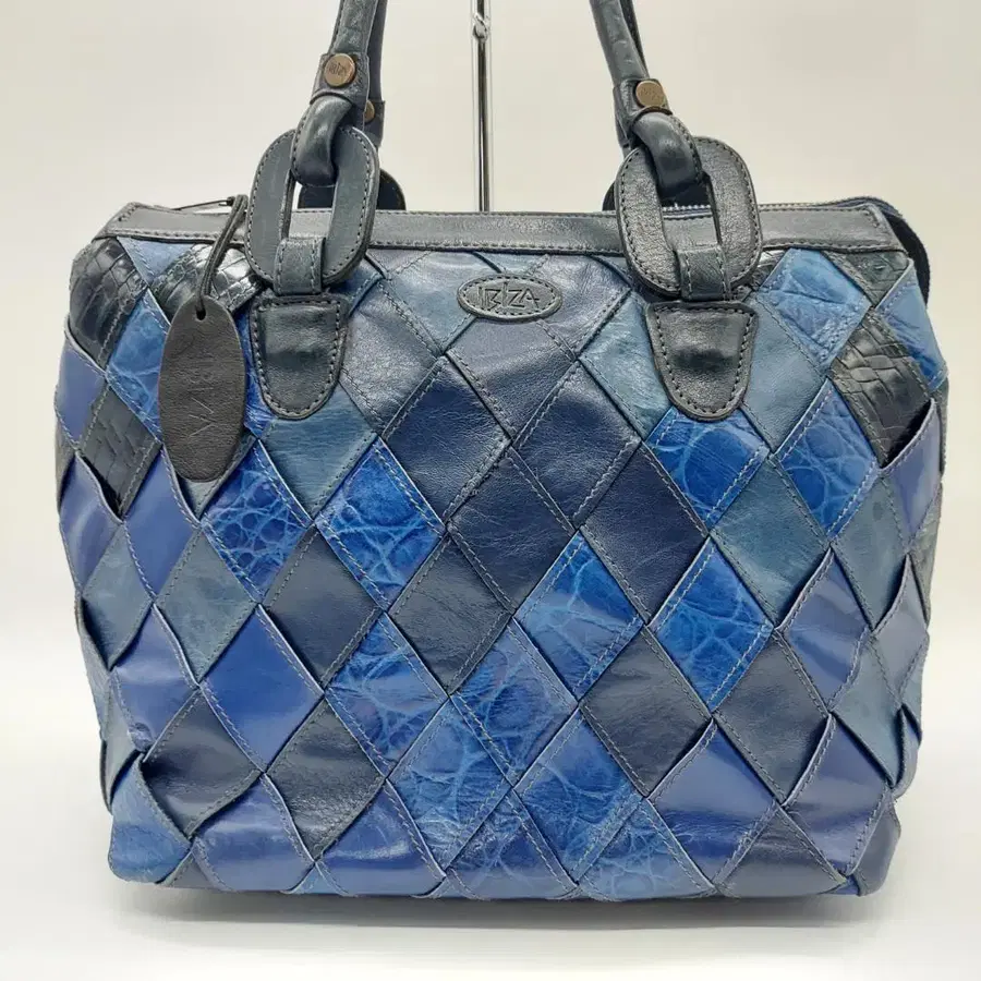 고품질 IBIZA 핸드백 가죽 뜨개질 블루