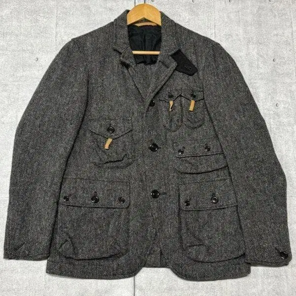 자동 번역되었어요. 원문보기컨디션 최상 BEAMS 트위드 울 자켓 스포츠 코트 빔즈 SPORT COAT 소가죽 가죽 사용 고마시오 울 탈부착 턱 스트랩 YL3243 셀렉 브랜드 재패니즈 패브릭 하이퀄리티 하이 디자인 JAPANESE FABRIC 사용감 적은 컨디션 최상 포켓 다수 백 포켓 포함