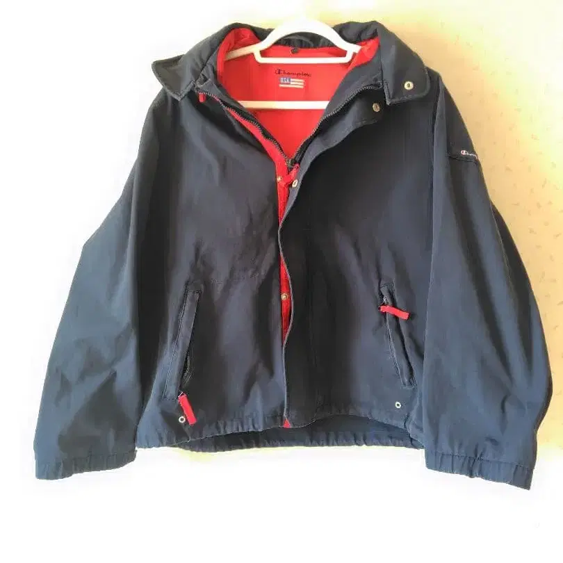 Champion 후드 부착 자켓 네이비/레드 M 사이즈