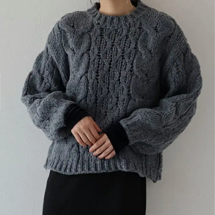 J by blue 로우게이지 볼륨 케이블 니트 풀오버 차콜