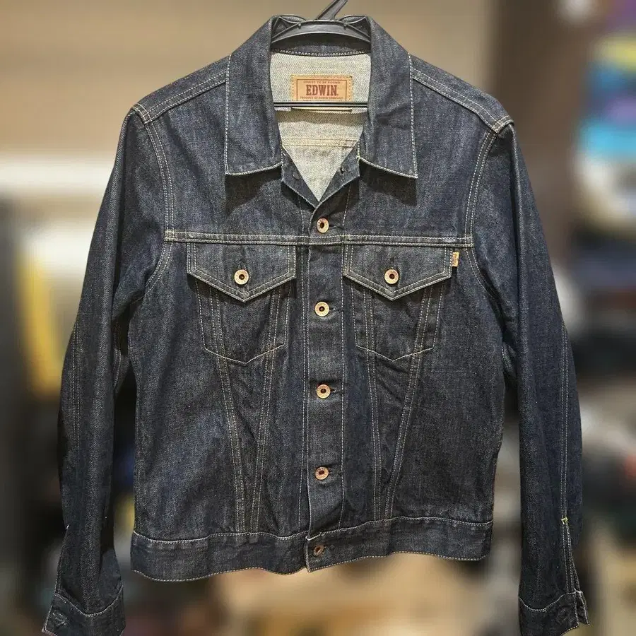 EDWIN 데님 자켓 빨간 귀 도넛 버튼 지쟌 인디고 블루